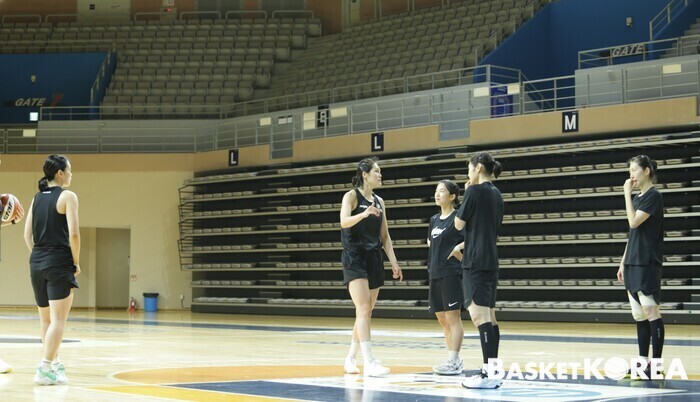 전지훈련을 떠나며 본격적인 비시즌에 돌입한 우리은행. 하지만 전지훈련에 보이지 않는 얼굴들이 많다. 올림픽 대표팀 지휘봉을 잡은 전주원 코치와 대표팀에 소집된 김정은, 박혜진, 박지현 등이 빠졌다. 루마니아 국가대표로 3x3에 출전하는 김소니아도 없다. 9명의 선수가 전부.