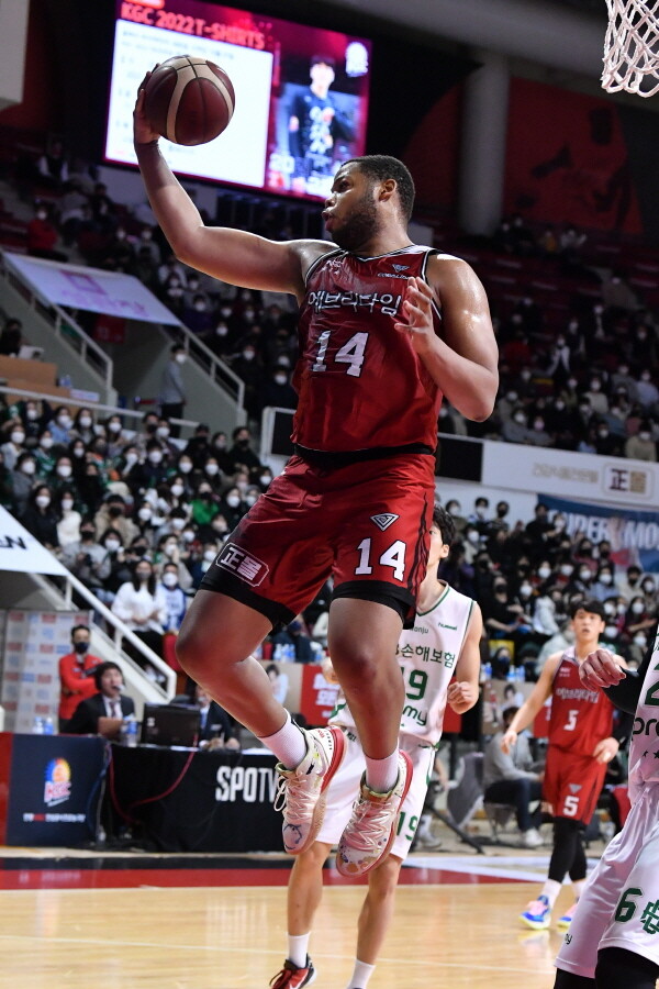 스펠맨은 31일 안양실내체육관에서 벌어진 2021-22 정관장 프로농구 원주 DB와 경기에서 19점 14리바운드 더블더블을 기록하며 안양 KGC인삼공사의 90-89, 짜릿한 1점차 승리를 이끌었다.