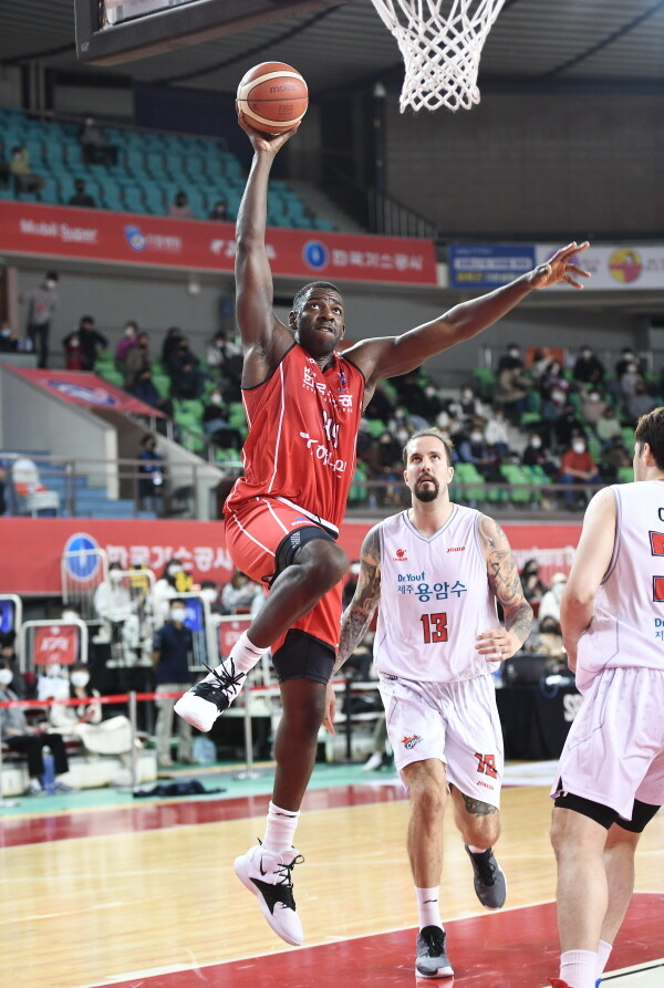 대구 한국가스공사는 17일 대구실내체육관에서 열린 2021~2022 KGC인삼공사 정관장 프로농구 정규리그에서 고양 오리온을 88-79로 꺾고 ‘대구 더비’에서 승리했다.