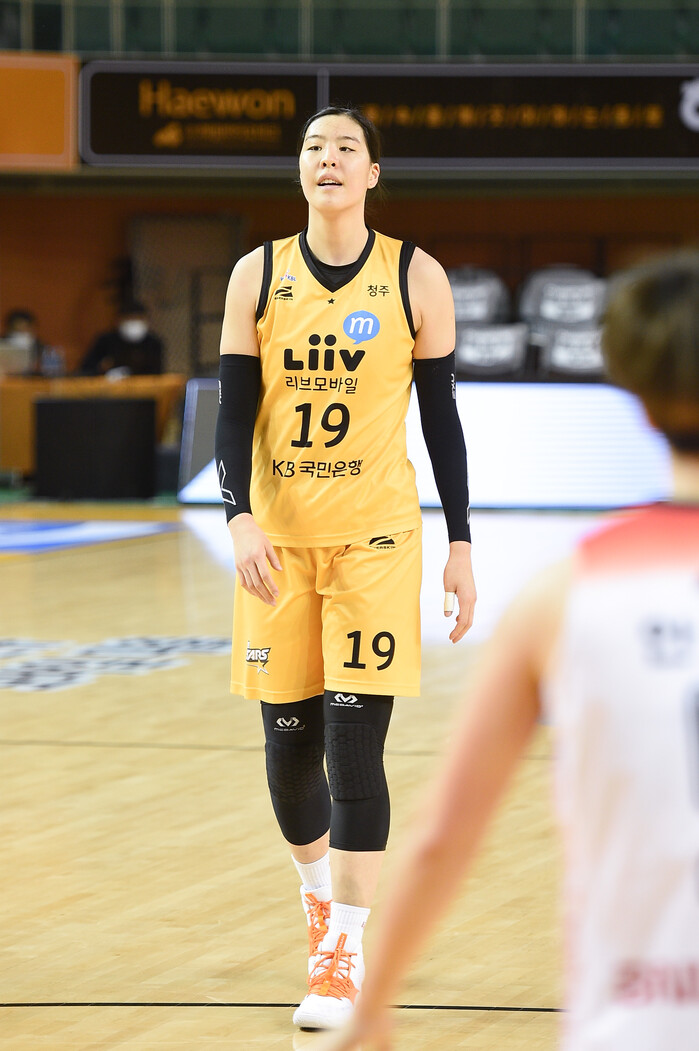선발로 출전한 박지수는 쿼터마다 5분씩 출전했다. 20분여 가까이 소화한 그가 남긴 기록은 10점 4리바운드. 평소 박지수의 기대치에 비해서는 아쉬운 활약이었다. 훈련으로 몸상태를 올렸다고는 하지만, 오랜만에 실전 경기에 나선 것이 아쉬웠다.