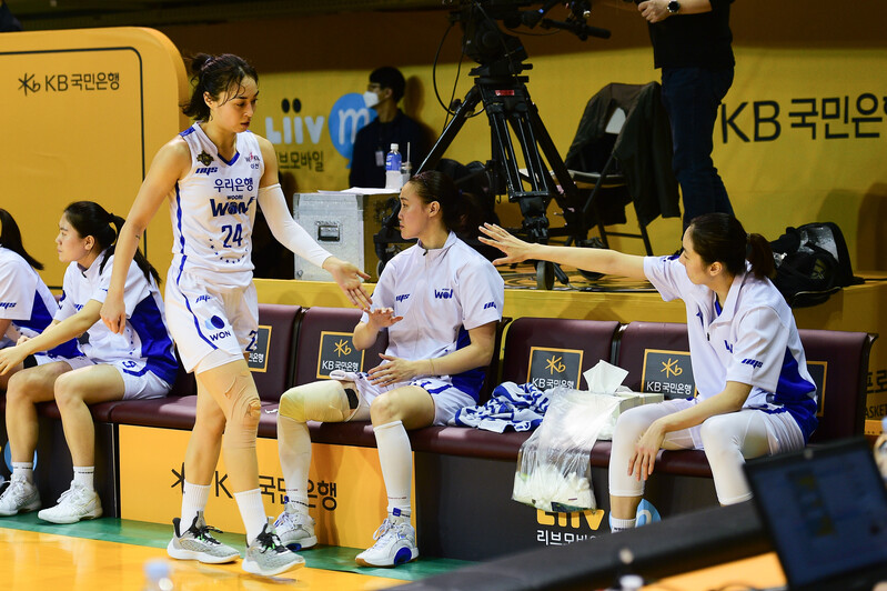 우리은행은 예정된 일정보다 1주일 늦게 플레이오프를 시작했다. 신한은행 선수단 일부가 코로나19에 확진됐고, 신한은행이 원래 일정대로 플레이오프를 소화하기 어려웠기 때문.