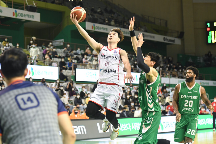 한국가스공사는 6일 원주종합체육관에서 열린 2021~2022 KGC인삼공사 정관장 프로농구 정규리그 원정 경기에서 원주 DB를 84-80으로 꺾고, 연승 행진을 이어갔다.