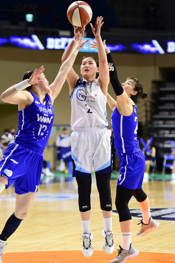 인천 신한은행은 지난 20일 아산이순신체육관에서 열린 삼성생명 2021~2022 여자프로농구 정규리그에서 아산 우리은행에 55-59로 졌다. 남은 정규리그 경기에 상관없이 3위를 확정했다. 플레이오프 상대도 우리은행으로 확정됐다.