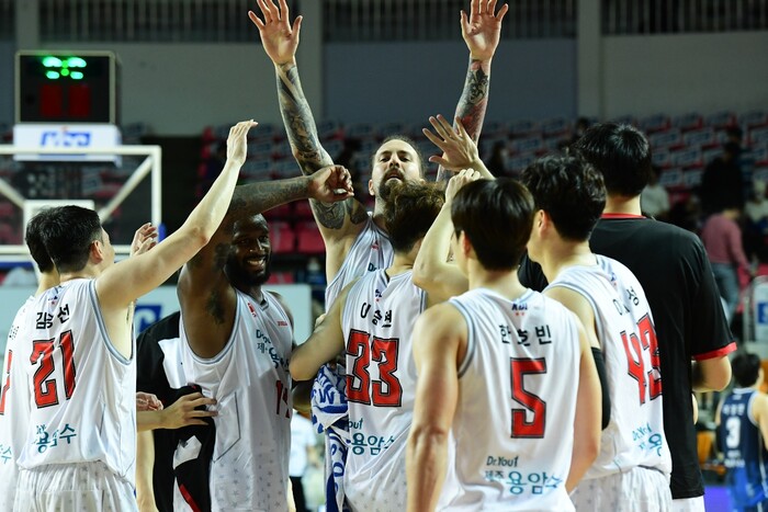안양 오리온 선수들이 경기 끝까지 집중력을 잃지 않으며 접전 끝에 승리했다.