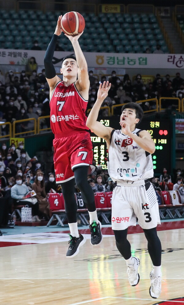창원 LG는 22일 창원실내체육관에서 열린 2021~2022 KGC인삼공사 정관장 프로농구 정규리그에서 수원 KT를 85–70으로 꺾고 상대 전적 첫 승을 따냈다. 이날 승리한 LG는 16승 18패로 6위에 올라섰다.