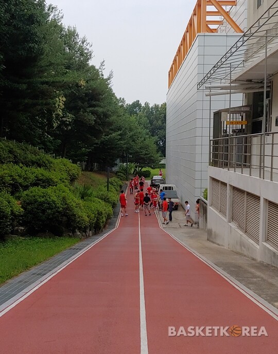 | ▲ 코트 달리기를 끝낸 선수들은 코트 옆 트랙으로 나왔다. 언덕 구간을 주로 뛰었다. 언덕 구간의 길이는 약 10m다. |