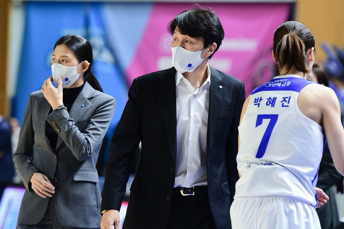 우리은행은 지난 13일 부산 BNK와 경기를 가졌다. 하루 쉬고 경기를 가졌기에 선수들의 체력적인 문제도 무시할 수 없었다. 결국 우리은행은 전반전부터 많은 백도어 컷과 볼 없는 움직임에 적절하게 대처하지 못했다. 위성우 감독도 이를 인지하고 있었다.