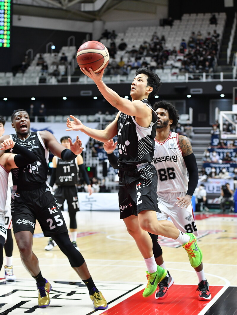 KT가 우승 후보로 도약한 이유. 노련하고 영리한 김동욱(195cm, F)과 수비력이 좋은 정성우(178cm, G)가 가세했기 때문이다. 여기에 하윤기(204cm, C)라는 높이를 채워줄 신인까지 입단했다. KT의 공수 옵션이 너무 다양해졌다.