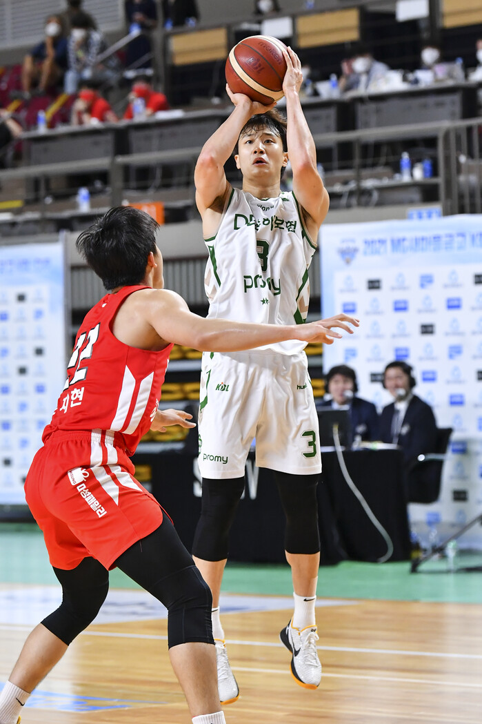 DB의 시작은 나쁘지 않았다. 이용우(184cm, G)와 김훈(196cm, F)이 시작부터 3점슛을 터뜨렸기 때문이다. 1쿼터에만 3점 4개를 터뜨린 DB는 25-18로 1쿼터를 마쳤다.