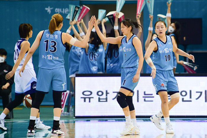 하나원큐가 신지현(174cm, G)과 양인영(184cm, C) 듀오를 앞세워 연패 탈출을 이뤄냈다.