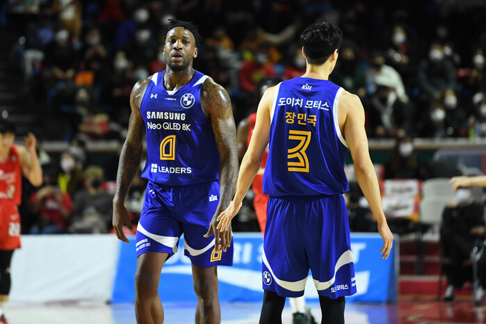 이어지는 공격도 마찬가지였다. 로빈슨은 장민국의 베이스라인 컷인을 생각했다. 반대로 장민국은 로빈슨에게 다가가 핸드오프 패스를 받으려 했다. 공은 다시 밖으로 나가버렸고 삼성은 허무하게 공격권을 잃고 말았다.