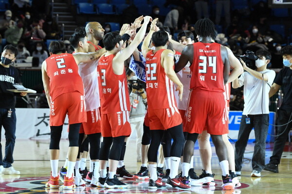 이날 결과로 SK는 16승 7패를 기록, 수원 KT에 1.5경기 뒤진 2위를 유지했다. 3위 안양 KGC인삼공사에겐 두 경기를 앞서고 있다.
