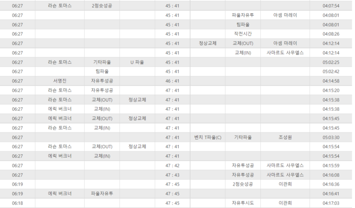 서명진이 벤치 테크니컬 파울 자유투를 먼저 쏘고, 라숀 토마스가 득점에 이은 추가 자유투를 던졌다. 그리고 마레이 대신 투입된 사마르도 사무엘스(208cm, C)가 U파울 자유투 2개를 던졌다. 그 후 LG의 공격권. 이관희가 U파울 이후 공격권에서 득점했고, 상황은 끝이 났다.