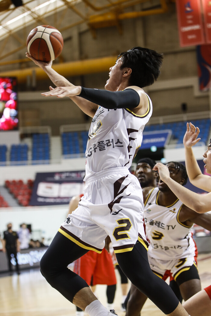 그런 의미에서 스타팅 라인업에 포함된 이승우(193cm, F)의 역할이 중요하다. 2021 KBL 국내신인선수 드래프트에서 5순위로 선발된 이승우는 스피드와 탄력, 볼 핸들링과 마무리 능력을 겸비한 선수. D리그에 다녀온 이후, 수비나 궂은 일에도 눈을 떴다. LG에서는 쓰임새가 다양한 자원.