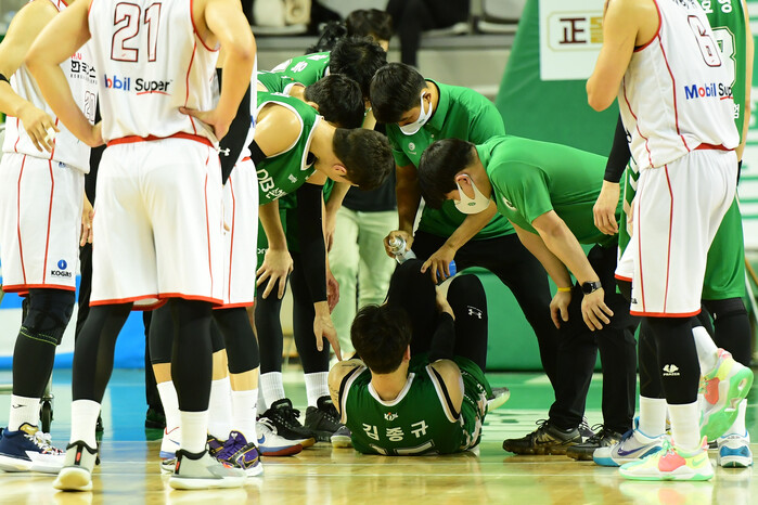 악재는 여기서 그치지 않았다. 김종규(207cm, C)도 3쿼터 가스공사 선수와 충돌 후 왼쪽 무릎을 잡고 쓰러졌다. 긴 시간 동안 일어나지 못했다. 동료들의 부축을 통해 벤치로 향했지만 발을 제대로 딛지 못하고 절뚝이는 모습이었다.