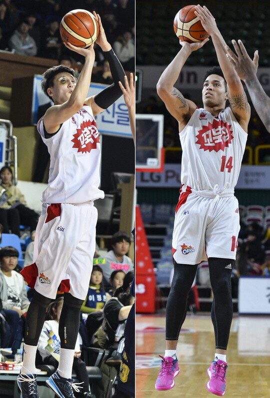 | 코트 위에서 리더십을 발휘해야 하는 최진수와 3점을 더 던져야 하는 저스틴 에드워즈(사진 오른쪽) |