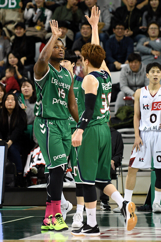 원주 DB는 23일 원주종합체육관에서 열린 2017~2018 정관장 프로농구 부산 KT와 홈 경기에서 108-83으로 이겼다. DB는 이날 승리로 3연승을 달리며 18승 8패를 기록, 서울 SK와 공동 1위로 어깨를 나란히 했다. 리온 윌리엄스 대신 내쉬로 교체한 KT는 6연패와 함께 22패(4승)째를 당했다.
