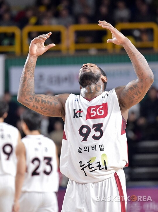 부산KT 맥키네스가 심판의 판정에 계속해서 아쉬움을 나타내고 있다.