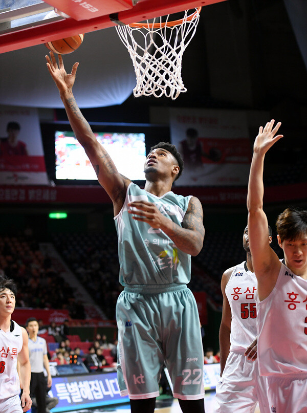 [바스켓코리아 = 부산/이재범 기자] KT가 양희종과 오세근이 빠진 KGC인삼공사를 꺾고 시즌 첫 홈 2연승을 맛봤다. KGC인삼공사는 시즌 첫 4연패에 빠졌다.