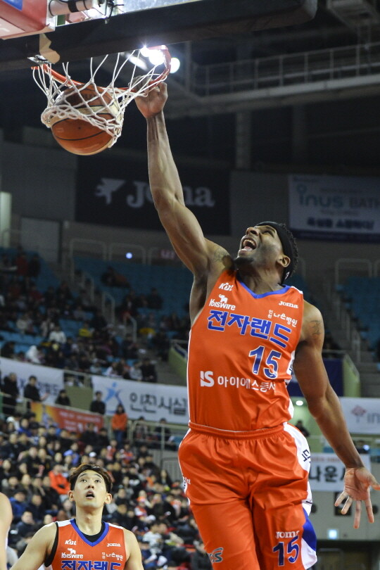 전자랜드는 11일(일) 인천삼산체육관에서 열린 2017-2018 정관장 프로농구 전주 KCC와의 홈경기에서 74-64로 승리했다. 전자랜드는 이날 승리로 최근 연승을 이어갔다.