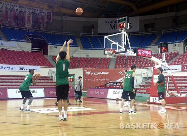 DB는 중요한 일전을 앞두고 5일 오후 5시부터 울산동천체육관에서 코트 훈련을 가졌다. 선수들은 스트레칭으로 몸을 푼 뒤 장신 선수들(김주성, 한정원, 서민수, 로드 벤슨)과 나머지 선수들을 구분해 슈팅 훈련을 했다.