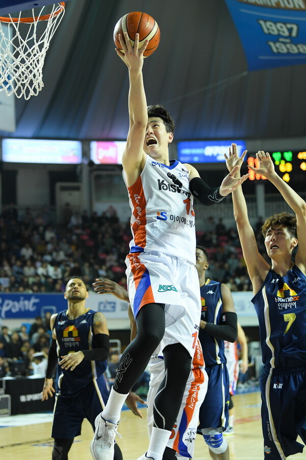 [바스켓코리아 = 전주/이재범 기자] 강상재가 17점을 올리며 팀 승리에 디딤돌을 놓았다. 팬들의 바람을 조금이나마 이룬 활약이었다.
