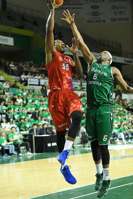 [바스켓코리아 = 원주/이성민 기자] 빠르고 견고한 풀 코트 프레스로 무장한 DB도 사이먼의 미친 슛감은 제어가 불가능했다.