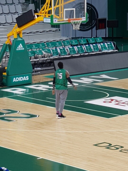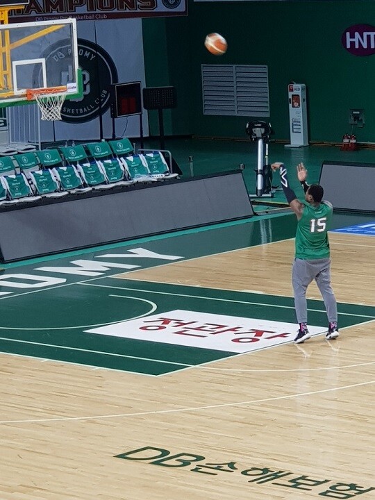 DB의 짜릿한 역전승으로 승부가 마무리된 원주종합체육관. 양 팀 선수들 모두가 경기장을 빠져나간 가운데 코트를 굳건히 지키고 있는 한 선수가 있었다. 주인공은 DB 디온테 버튼.