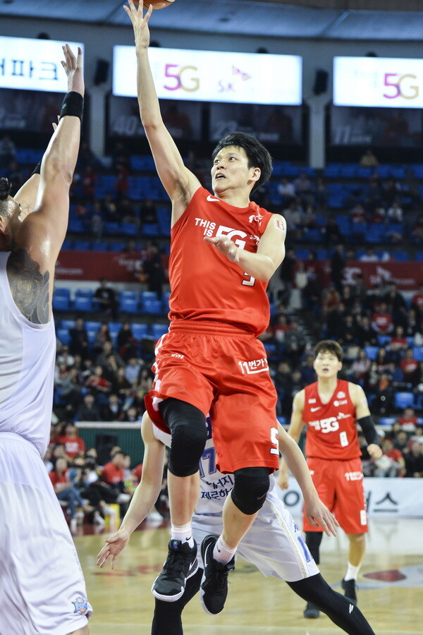 김선형은 이번 시즌 정규리그에서 30분 이상 출전한 적이 한 번도 없다. 문경은 감독은 발목 부상에서 돌아온 김선형의 출전 시간을 20분 내외로 조절했다. 김선형이 가장 많이 뛴 건 KCC와 마지막 경기에서 기록한 28분 39초다.
