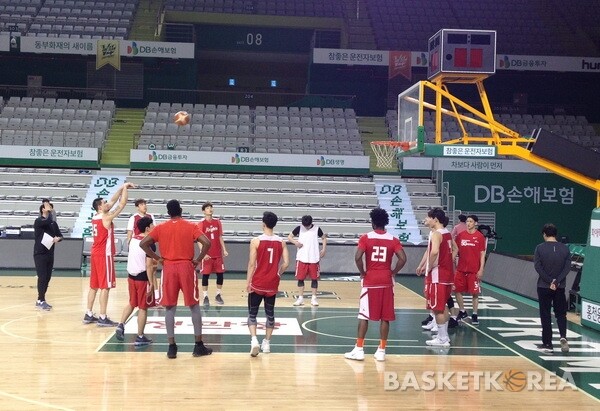 서울 SK와 원주 DB가 챔피언결정전을 앞두고 7일 오후 원주종합체육관에서 훈련을 가졌다. SK가 먼저 훈련한 뒤 뒤이어 DB가 이어받았다.