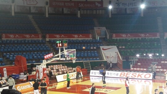 5분 후 SK 선수도 코트에 나와 슛과 볼 감각을 다졌다. 캡틴 김선형과 변기훈, 최부경에 이어 신인 안영준도 자유투와 중거리포를 점검했다.