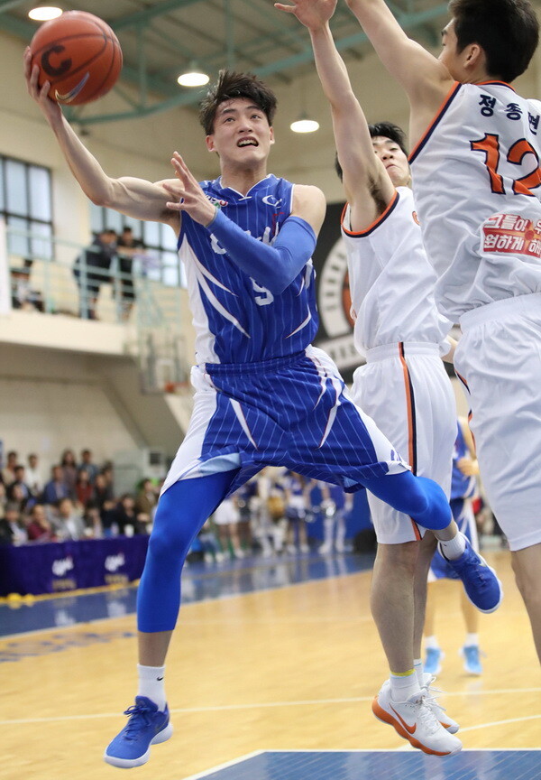 문상옥은 슈터임에도 올해 슛 정확도가 떨어졌다. 지난 1라운드 동국대와 경기에선 3점슛 12개 중 1개 성공하기도 했다. 동국대와 경기 전까지 6경기에서 3점슛 성공률 20.5%(8/39)로 부진했다. 다시 만난 동국대를 상대로 3점슛 3개를 집중시켰다.