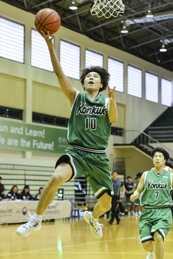 건국대는 9일 동국대와 원정경기에서 78-74로 승리하며 5연패에서 벗어났다. 승리 일등 공신은 신입생 이용우(184cm, G)다. 이용우는 3점슛 7개 포함 36점을 올리며 팀 득점을 주도했다.