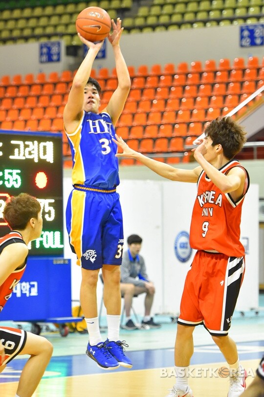 한양대가 승리하기 위해선 김기범이 공격을 풀어나가야 하는 건 맞다. 한양대 정재훈 감독은 4학년들에게 충분한 출전시간을 주고 있다. 그럼에도 김기범은 이 때가 아니라면 3점슛을 던지지 못 할 선수처럼 조급하게 플레이를 한다.