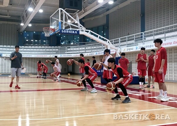 오리온 선수들은 요가를 마친 뒤 김도수 코치 주도로 볼 컨트롤 중심의 드리블 훈련에 집중했다. 김도수 코치는 “감독님께서 스킬 트레이닝 영상을 보내주셔서 그 중에서 도움이 될 만한 것들을 골랐다”고 했다.