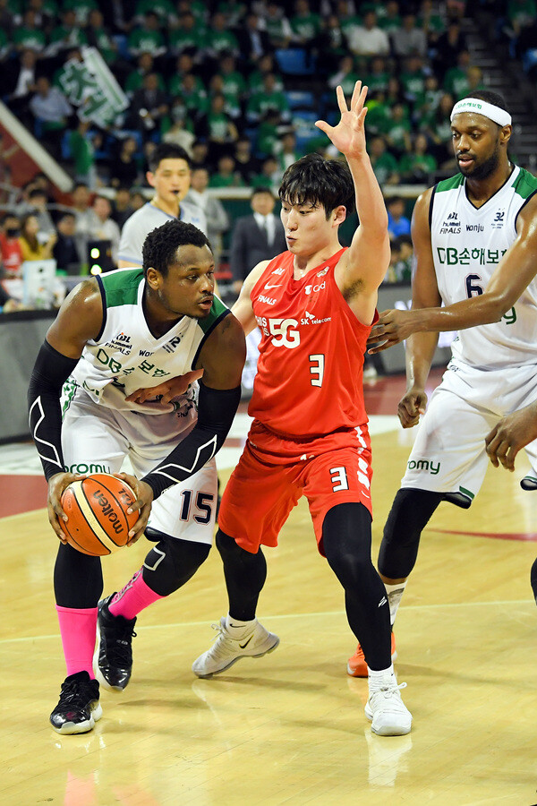 | 2017~2018시즌 챔피언결정전에서 디온테 버튼을 막는 수비가 최원혁의 가치를 높였다. |