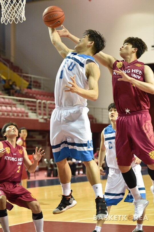 더구나 이날 경희대 골밑을 지킨 선수는 박찬호(201cm, C)였다. 배창민은 박찬호를 상대로 자신감 있는 골밑 플레이를 펼쳤다. 경희대가 배창민을 막기 위해 더블팀 수비까지 했다.