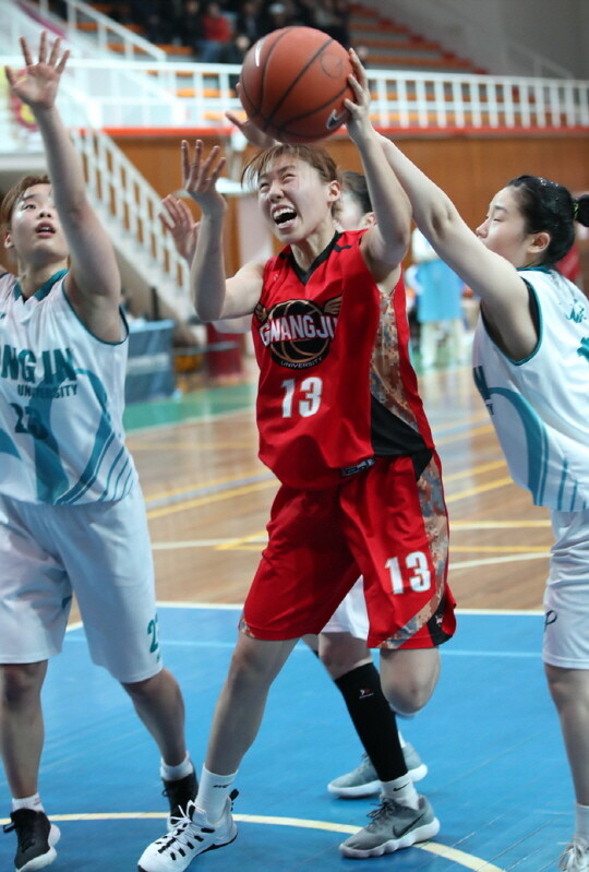 광주대는 18(일) 경북 상주실내체육관 구관에서 열린 제34회 MBC배 전국대학농구 상주대회 여자부 예선 마지막 경기에서 극동대를 72-49로 이겼다.