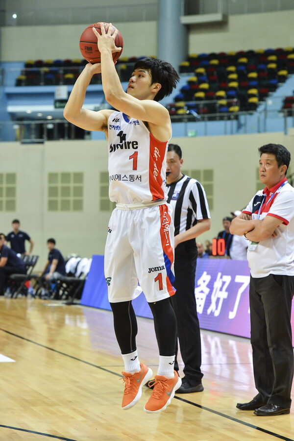 전자랜드는 이번 대회 예선 3경기 평균 81.0점을 올리며 참가 8팀 중 득점 1위였다. 득점이 많은 비결은 3점슛이다. 전자랜드는 경기당 평균 14.0개의 3점슛을 터트렸다. 성공률은 38.8%(42/108)로 역시 1위. 3점슛 양과 질 모두 뛰어났다.