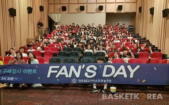 전주KCC는 28일(토) 전라북도 전주시 덕진구 송천동에 위치한 메가박스 송천에서 팬즈 데이를 열었다. 팬즈 데이는 지난 시즌 시즌권 구매자들 중 구단 공식 홈페이지를 통해 이벤트 참여를 신청한 신청자들에 한해 진행됐다.