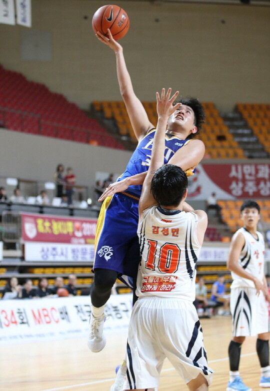 | 지난 7월 상주에서 벌어졌던 MBC배에서 레이업을 시도하고 있는 김기범 |
