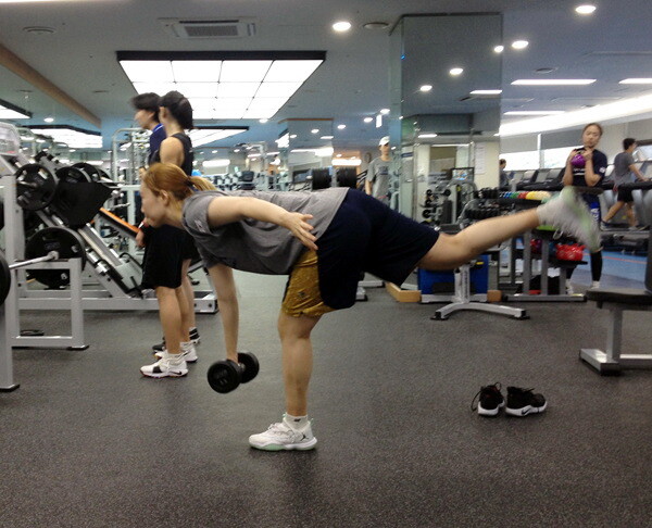 | 올림픽공원 체조경기장 웨이트 트레이닝에서 몸을 만들고 있는 3대3 여자농구 대표팀 박지은 |
