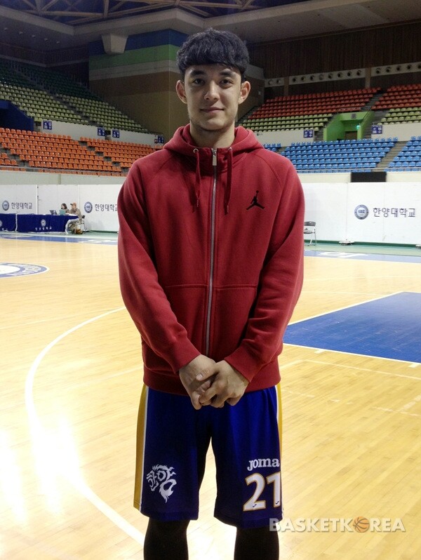 자신의 장점을 들려달라고 하자 “3점슛이 정확하고, 운동능력도 좋다”고 짧게 답했다. 한양대 슈터는 김기범이다. 김기범은 지난해와 올해 3점슛 1위(2017년 58개, 2018년 55개)에 올랐다. 김기범은 올해를 끝으로 한양대를 졸업한다.