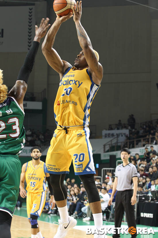 | 한 때 11점 열세였던 승부를 뒤집는데 앞장선 삼성 벤 음발라 |