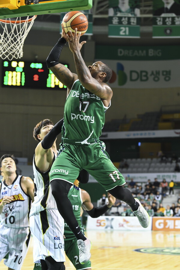 | 17일 창원 LG와 맞대결에서 3쿼터 24점 등 47점을 기록한 DB 마커스 포스터 |