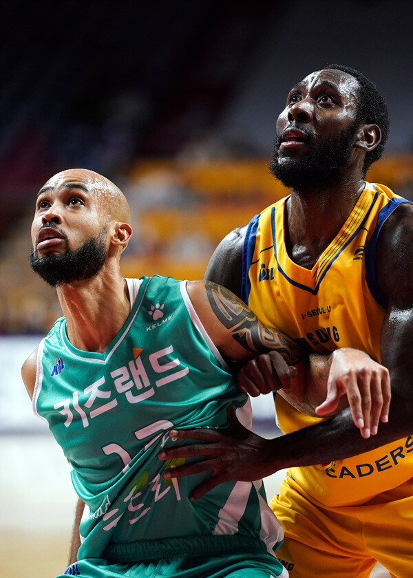 | 득점 대결을 펼치며 재미있는 경기를 만든 KT 데이빗 로건과 삼성 글렌 코지(사진 오른쪽) |