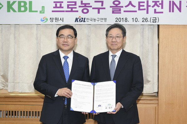 KBL과 창원시는 26일 오전 10시 창원시청 시정회의실에서 2018~2019 SKT 5GX 프로농구 창원시•KBL 올스타전 개최 협약식을 가졌다.