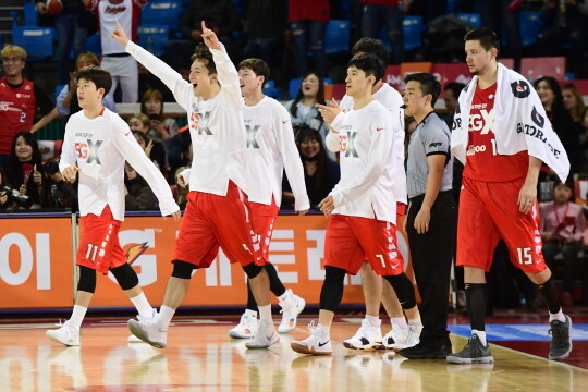 SK가 디펜딩 챔피언의 자존심을 지켜내는 순간이었다. 객관적인 전력의 열세에도 불구하고 효율적인 공격에 더해진 촘촘함과 끈기, 투지가 더해진 값진 승리였다.