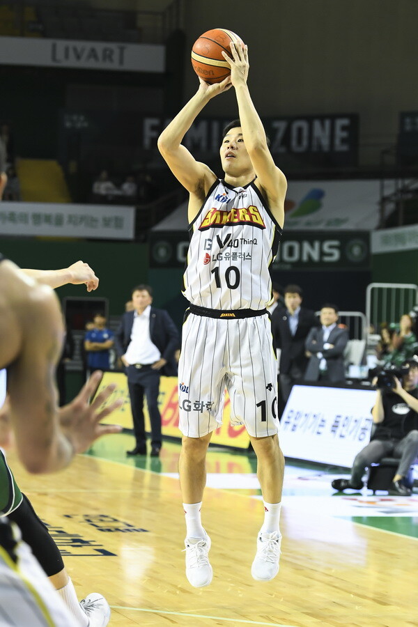 [바스켓코리아 = 이재범 기자] 조성민(189cm, C)이 필요할 때 3점슛 하나씩 성공하며 팀 승리를 도왔다.
