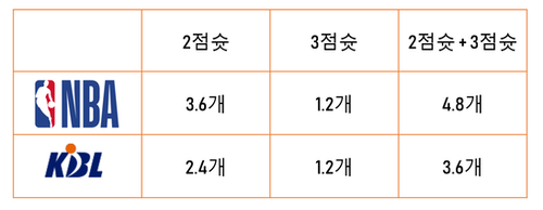 3점슛 시도는 NBA에 근접한 수준